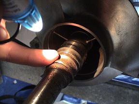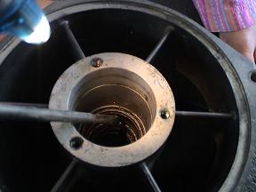 With that being said, here is my problem. The remaining parts of the busted bearing (the inner and outer rings) are stuck to the inside of the vane-guide, and to the jetpump shaft behind the impeller. Any tricks to get these things off so that I can put a new bearing in there? I think I have to remove the jetpump shaft from the impeller, but I do not know how. And the outer bearing ring is really jammed in the vane guide.