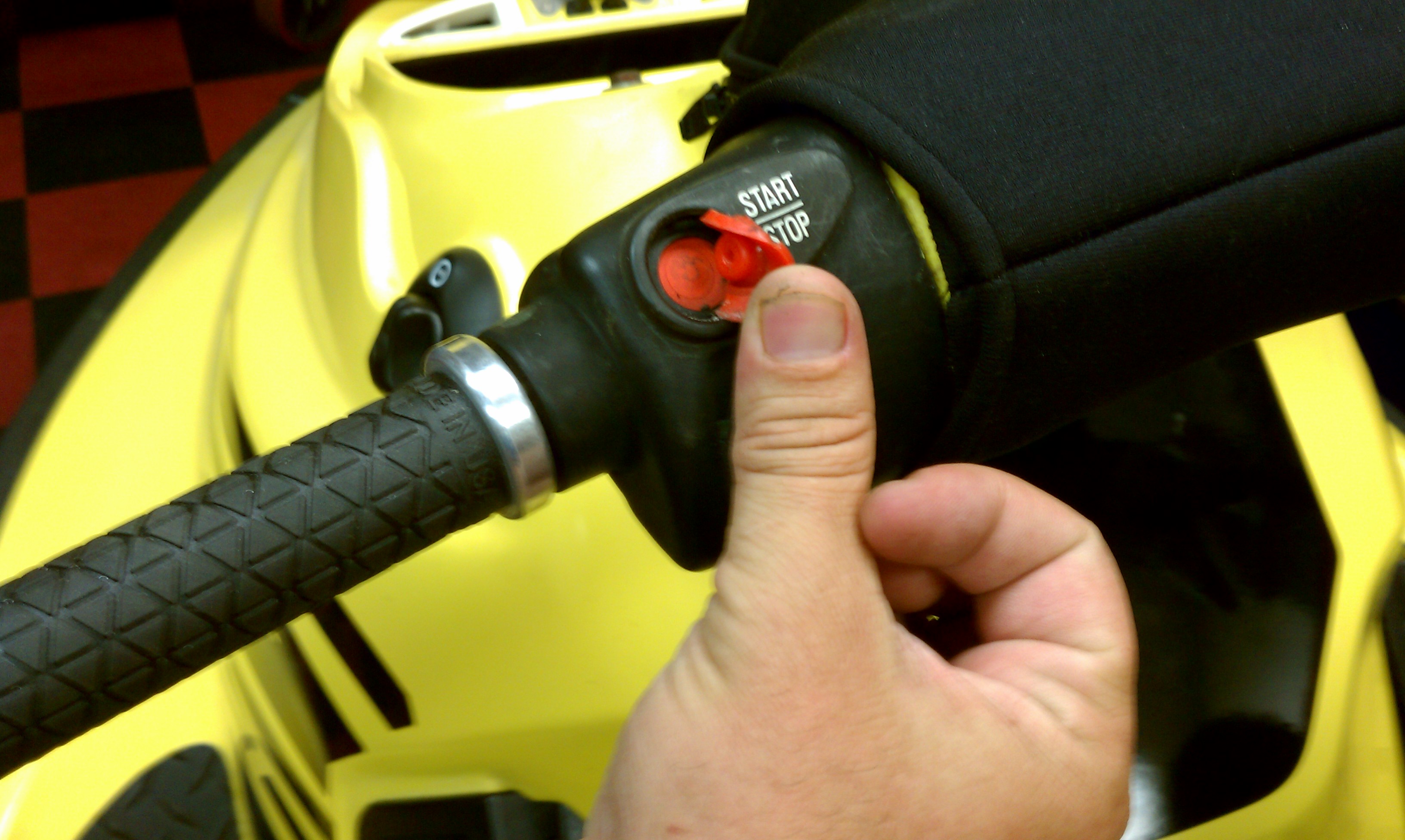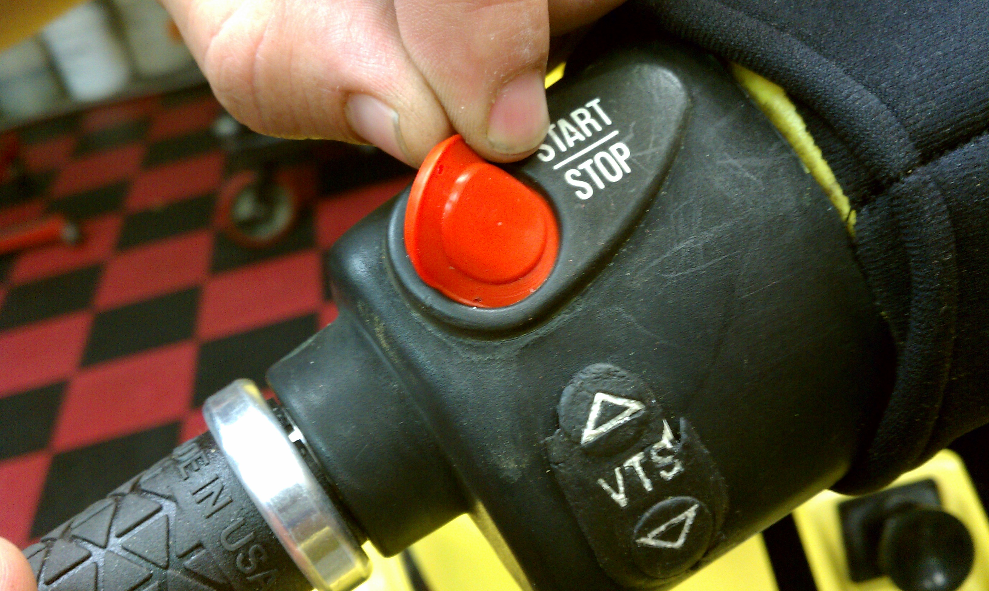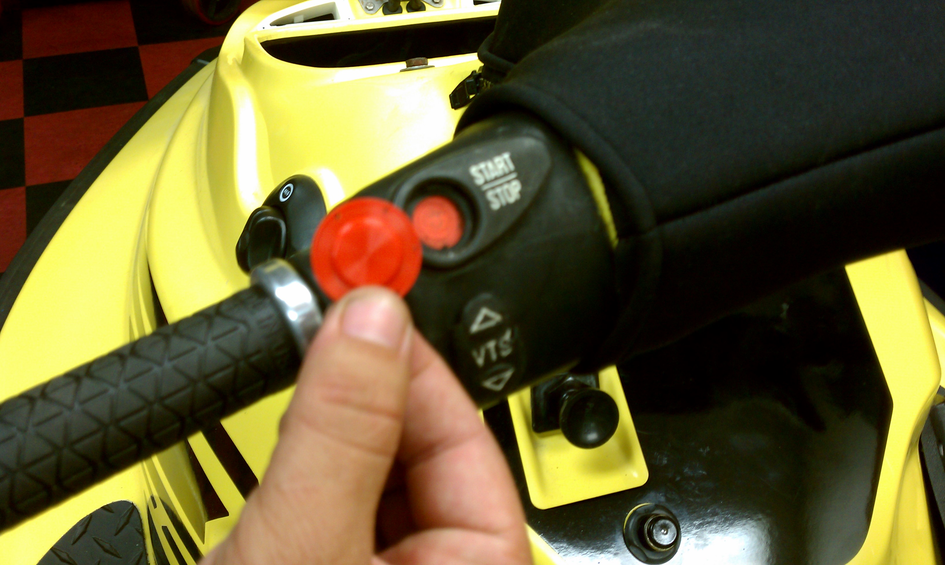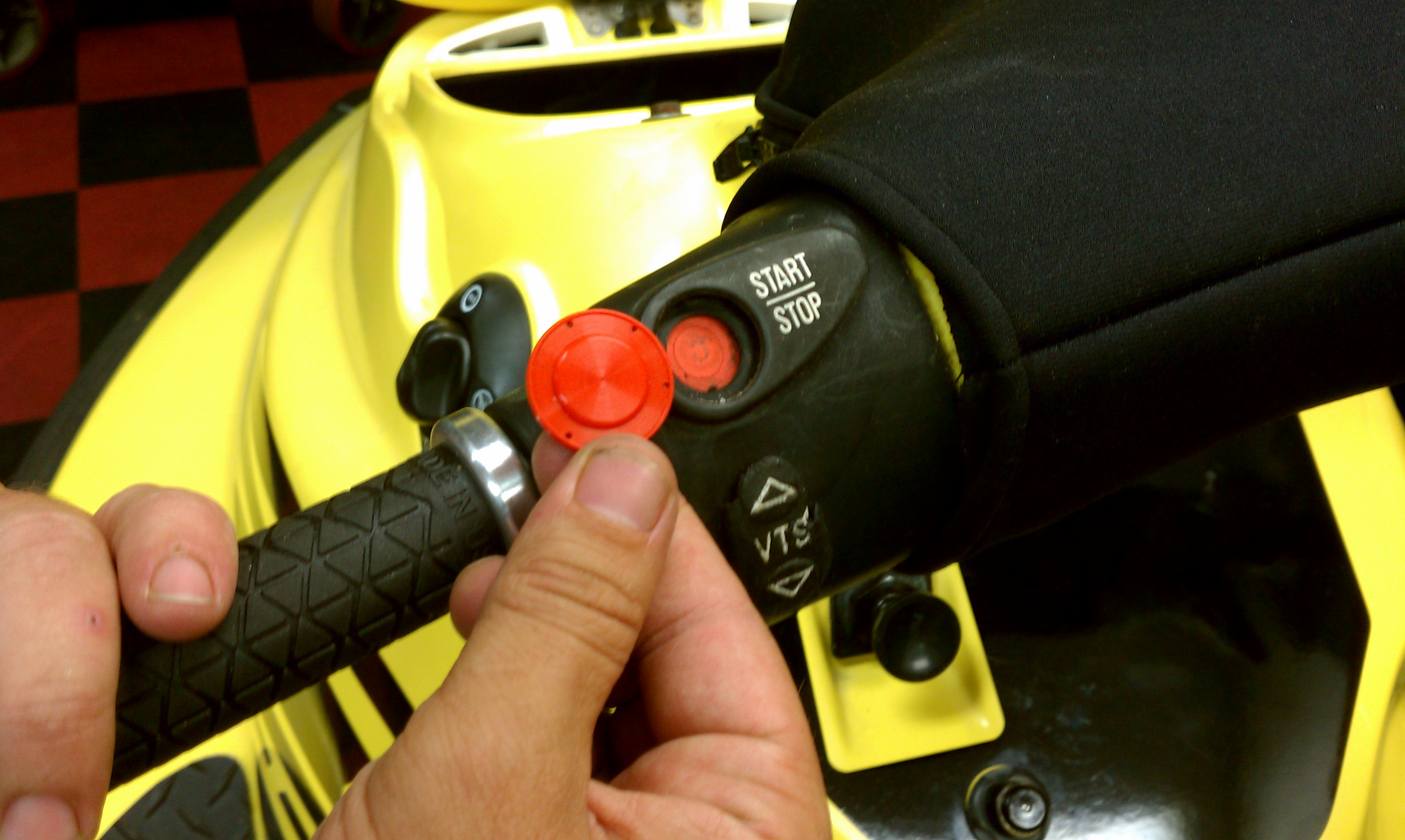Using a small flat head screwdriver work the remains of the old red button cover out and clean the groove. Once all small parts of the old button are removed begin sliding in the new button cover, carefully work it into the groove with the same small screwdriver, tuck it in neatly and you’re done. SBT sells this button cover