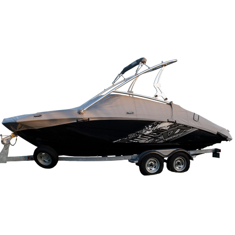 Will fit tower or non-tower models A good storage cover is essential to protect your Yamaha Jet Boat while it is stored. SBT is pleased to offer a custom cover sewn right here at SBT headquarters. These covers are made with a 600D solution dyed polyester. That means it breathes to help cut down on mildew but still keeps the elements out. This cover includes a ratchet strap to tighten the cover under the rub rail as well as reinforced cutouts at the cleat locations. This allows you to cover the boat and still tie it to the dock. We also sell an optional cover support system to help prevent water from pooling on the cover when the boat sits outside. *Representative image only, may not be actual cover. |